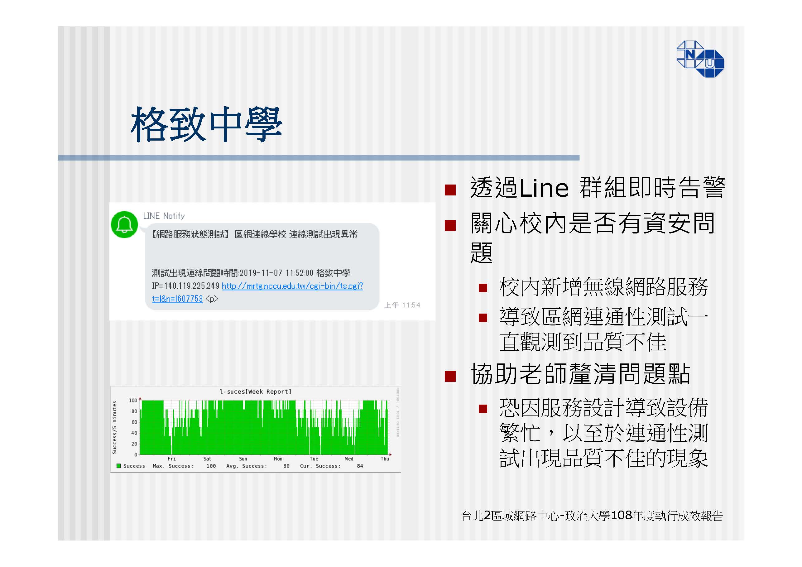 - 通報完成率(時限內完成通報之事件數比率):100 %