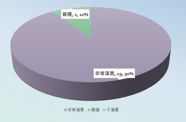 - 行政庶務滿意度分成:不滿意、普通滿意、非常滿意